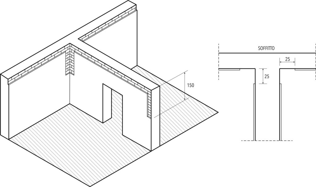 - Remove the existing plaster between the masonry and the beam (or the floor) for a width of 50 cm (25 + 25 cm).